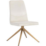 Chic and polished, this stunning dining rmchair unifies the best of style and function. Upholstered in vienna cream fabric and completed with stainless steel legs in a gold finish. Also available in an armrest version in chacha cream fabric.