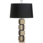 Crafted with modern style, holton lamp adds dimension to your space with its two toned geometric design. A structural brass column supports a black drum shade, completing a look worthy of a tabletop in your home or office.