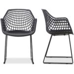 Practical in black and easy to clean with an openwork back, curved form, and sloped armrests, this chair design is versatile to an array of outdoor and balcony layouts.