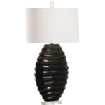 Add a textural element to a tabletop or nightstand. The Huaraz lamp is delicately crafted from ceramic with a black glaze and finished with a white silk shade. Designed by Shayla Copas.