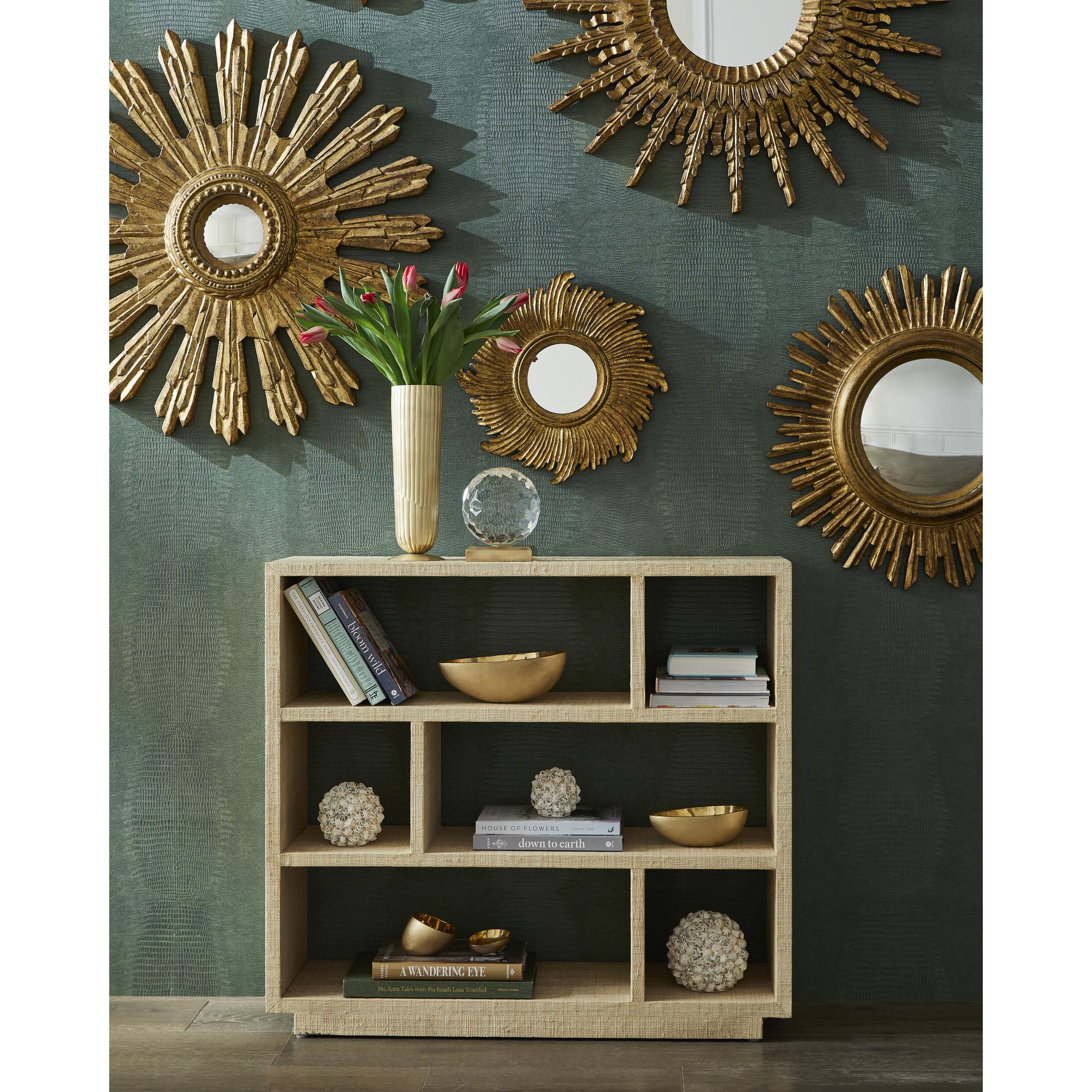 Ornate details combined with a glistening gold finish, the Illuminate Mirror will brighten any room. Place in a grouping with 385941, 385942, 385943, 385945 or by itself to create a sublime focal point.