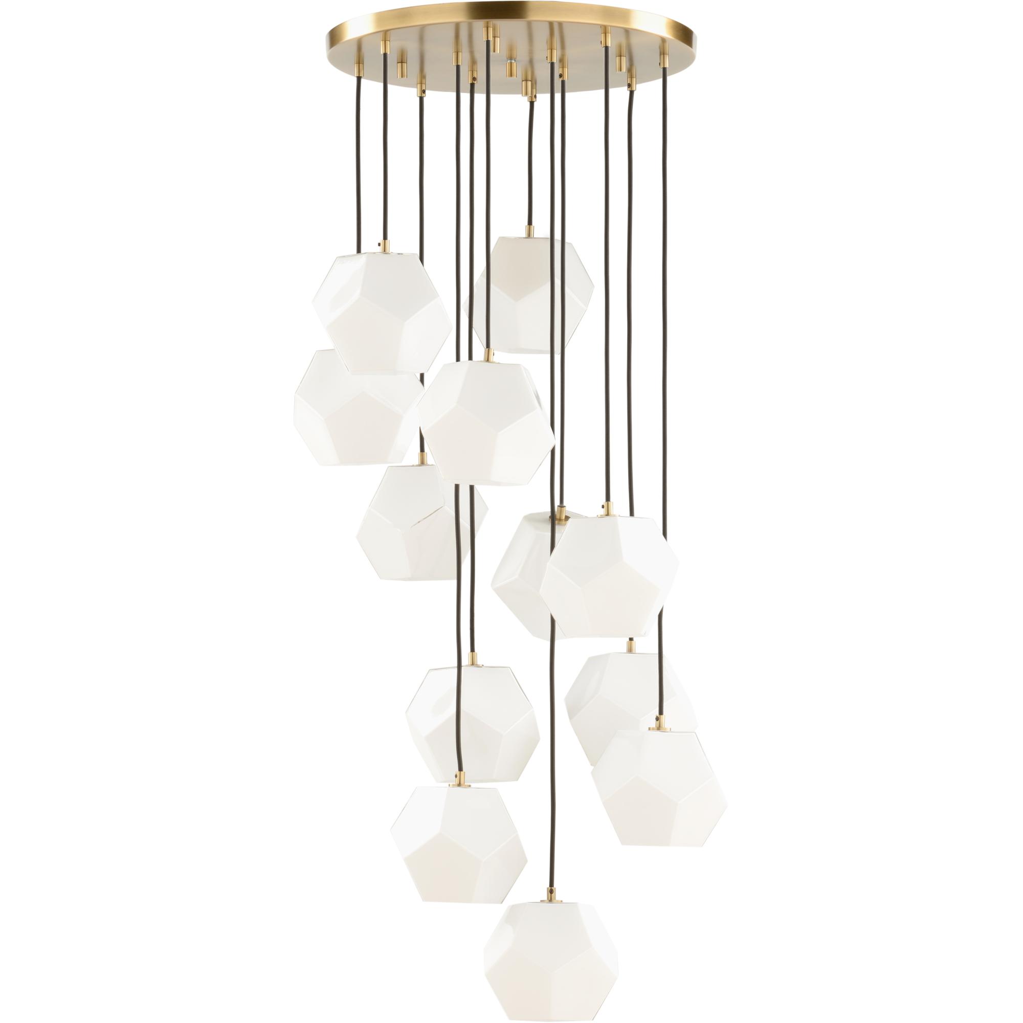 A study in form and beauty, the Indicus Chandelier is a sculptural statement. Glass geometry glows when illuminated to create a graceful light source and reflects natural light with subtlety and charm. The multi-drop elements suspend from height-adjustable cords for custom flexibility across a myriad of applications. (Each wire is 10.5′ long and can be adjusted to suit any space)