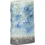 The Indigo Vase, part of the Shiga collection, is hand turned and uniquely finished in one of six ancient kilns in Japan. The vase is made of the soil that includes Feldspar and Quartz of the Shigaraki region and is influenced by nearby Lake Biwa. Made in Japan.