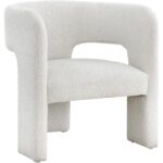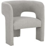 Clean lines and contoured arches add style and structure to the Isidore Lounge Chair. Features a curved backrest and open back for optimal comfort. Eye-catching from all angles. Fully upholstered in ernst sandstone fabric.