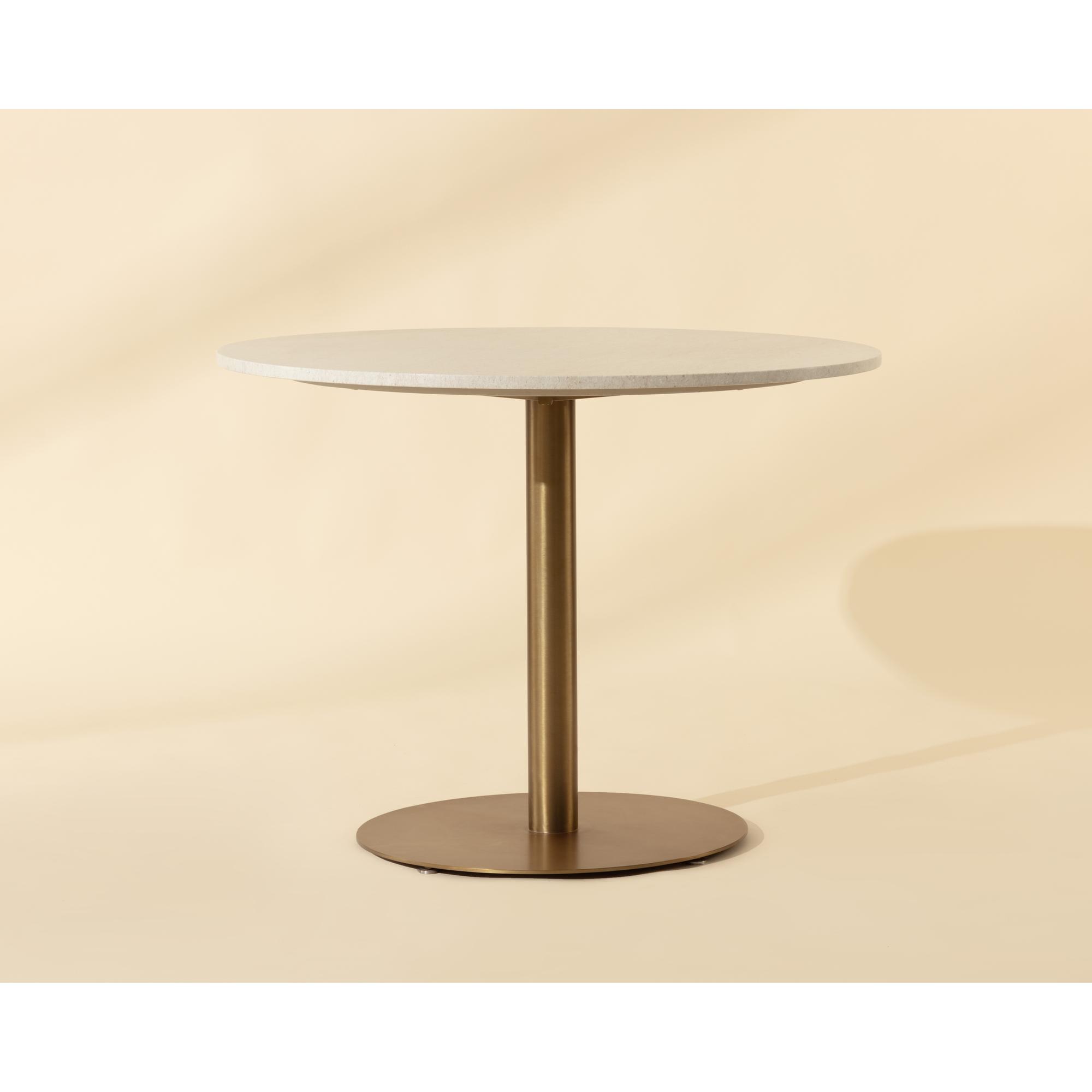 Modern elegance redefined, the Iska Bistro Table combines a circular solid marble top with a stainless-steel pedestal and base. Compact and easy to place, it transitions effortlessly from cafés and lounges to residential dining areas.