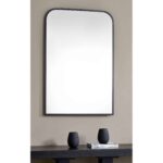 Harsh and soft angles intertwine in this mirror design. Cast in the contemporary space, it can integrate into the interior while making a stylish statement. An iron structure with a matte black painted finish, it easily ties all the other decor accessories together.