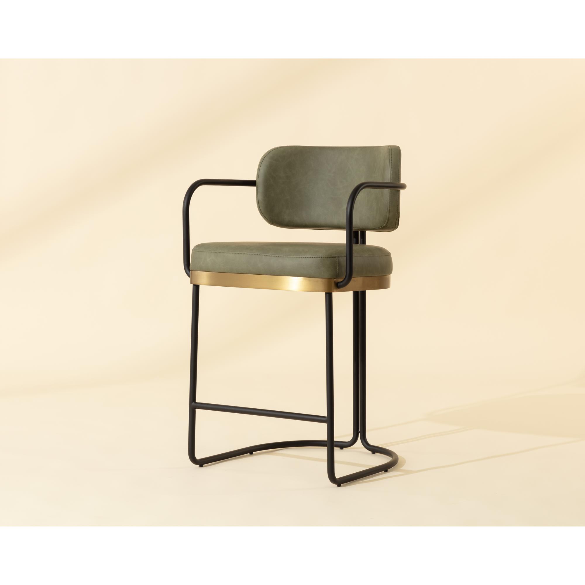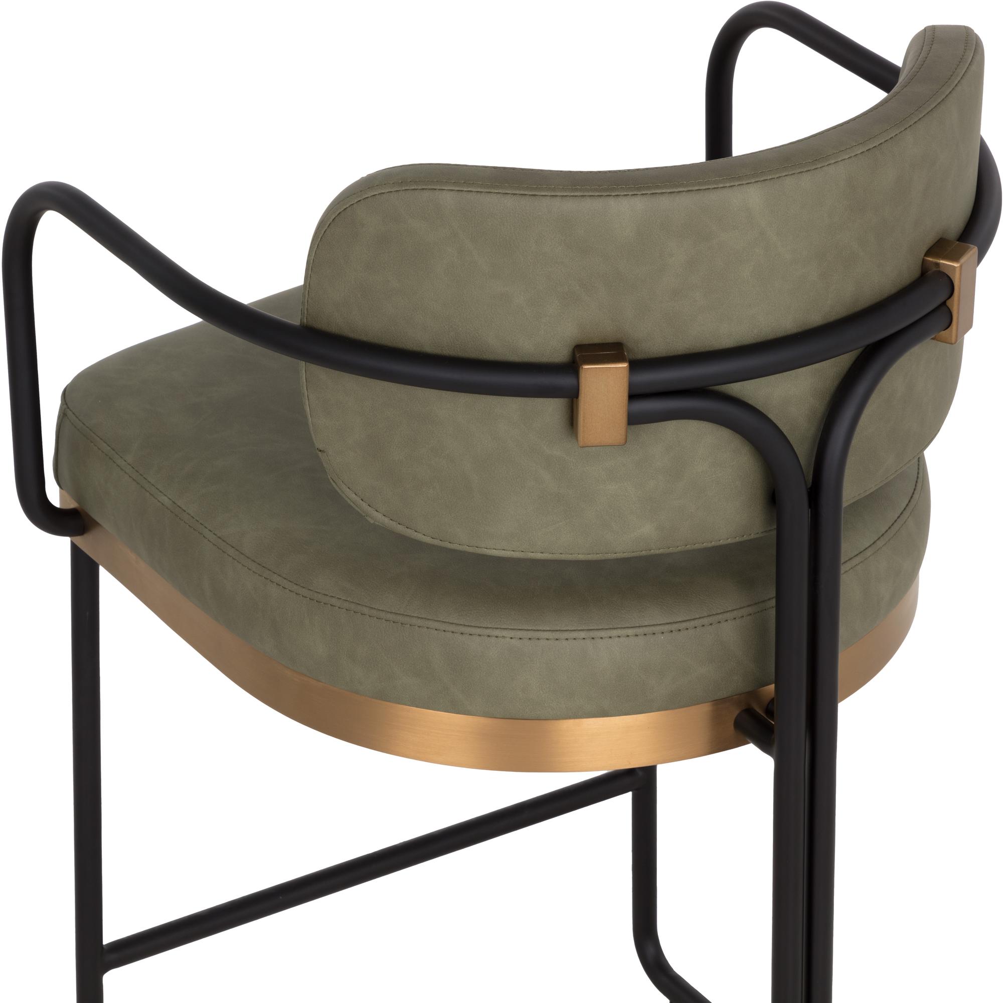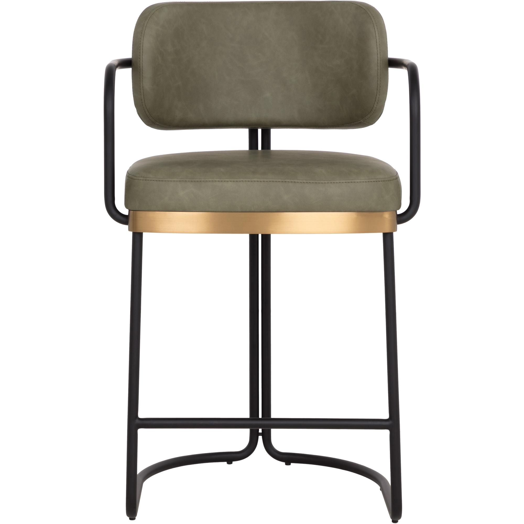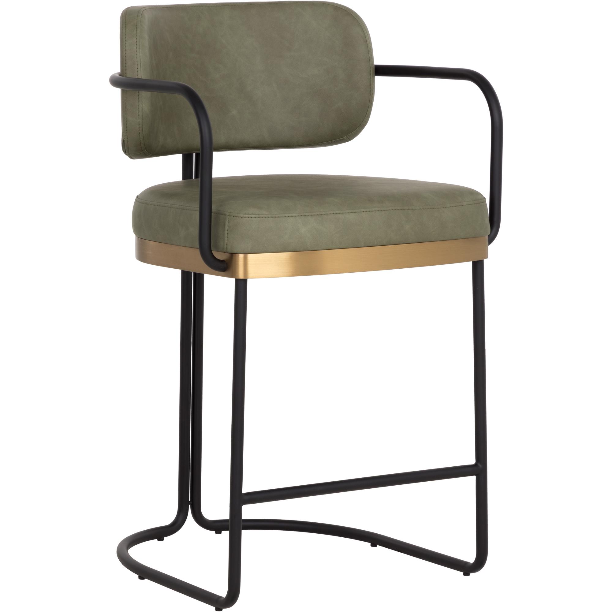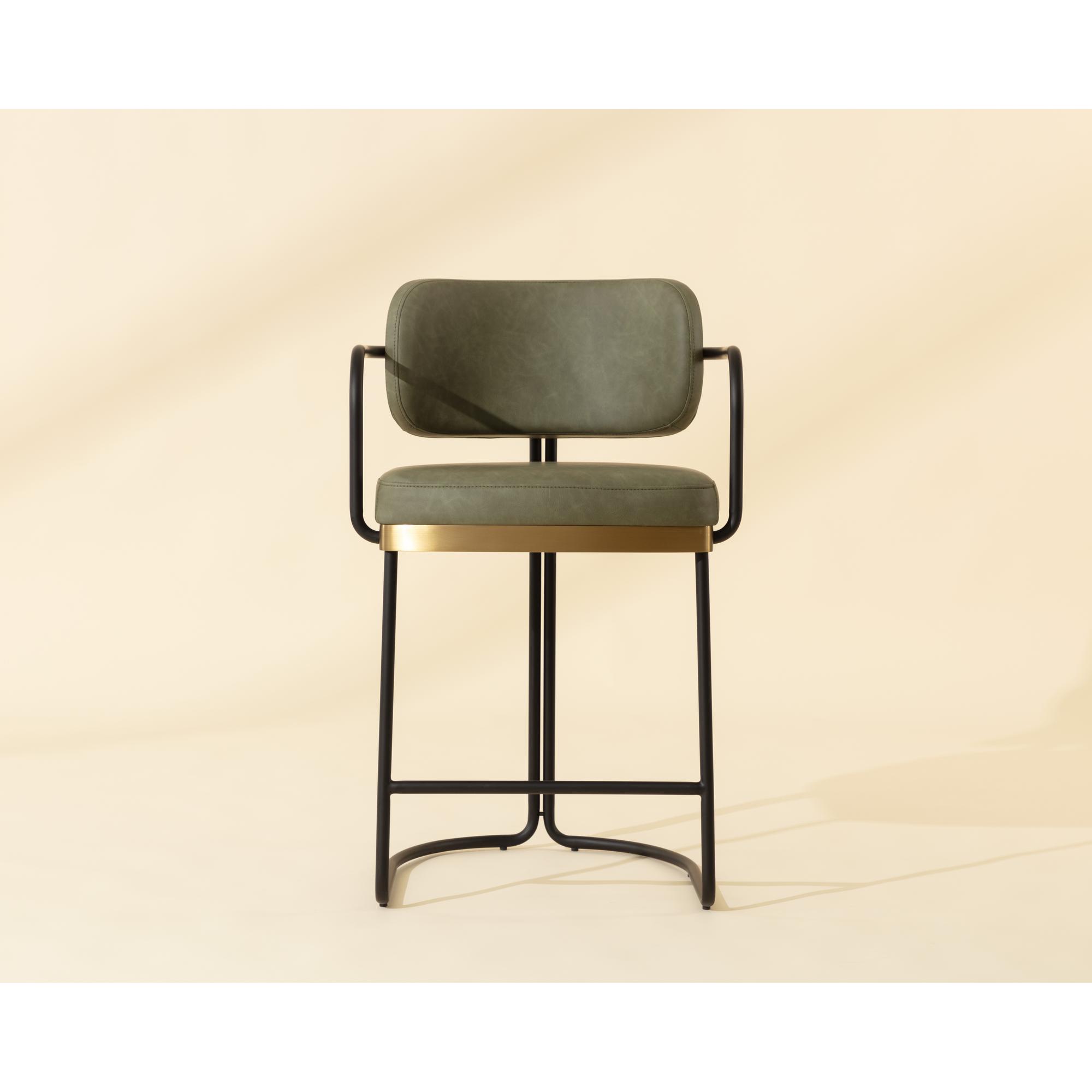 The Jalen Counter Stool is poised to be a guest favourite thanks to its free flowing curves and gold stainless steel accents. Made from powder-coated iron with a supportive seat and back upholstered in smooth faux leather, this armchair will fit into any residential or commercial setting.