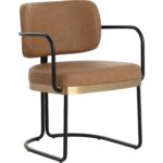 The Jalen Dining Armchair is poised to be a guest favourite thanks to its free flowing curves and gold stainless steel accents. Made from powder-coated iron with a supportive seat and back upholstered in smooth faux leather, this armchair will fit into any residential or commercial setting.