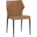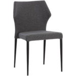 With a distinctly shaped backrest, this stackable modern dining chair is a great addition to any dining space. Stocked in bounce stone faux leather with a stylish open seamed zipper on the back. Completed with powder coated steel legs in black. Handle With Care: This design has been crafted with faux leather. Faux leather is manufactured to reflect the natural characteristics of leather; as such, colour variations, markings wrinkles, grooves, and light scratches are appreciated characteristics. No two pieces will be alike.