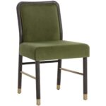 The Jeno Dining Chair is a sophisticated study of mid-century design. A faux leather seat in milliken cognac combined with a smoke grey rubberwood frame gives a striking balance of impeccable style and comfort. Brass metal stretchers and foot caps enhance the overall look. Handle With Care: This design has been crafted with faux leather. Faux leather is manufactured to reflect the natural characteristics of leather; as such, colour variations, markings, wrinkles, grooves, and light scratches are appreciated characteristics. No two pieces will be alike. Visit our Product Care page for more information on how to ensure the lasting beauty of this piece. As wood is an organic, porous material, these pieces will contain natural variation of texture and may also exhibit fine indentations and cracks. Wood pieces will also display a disparity of colour and grain, and visible knots and burls that add to the character of each piece.