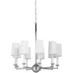 The jermyn street multi-shade version creates a more traditional arrangement while highlighting the artisan details in the chandelier itself. There are nine lights. Comes with six feet of chain.