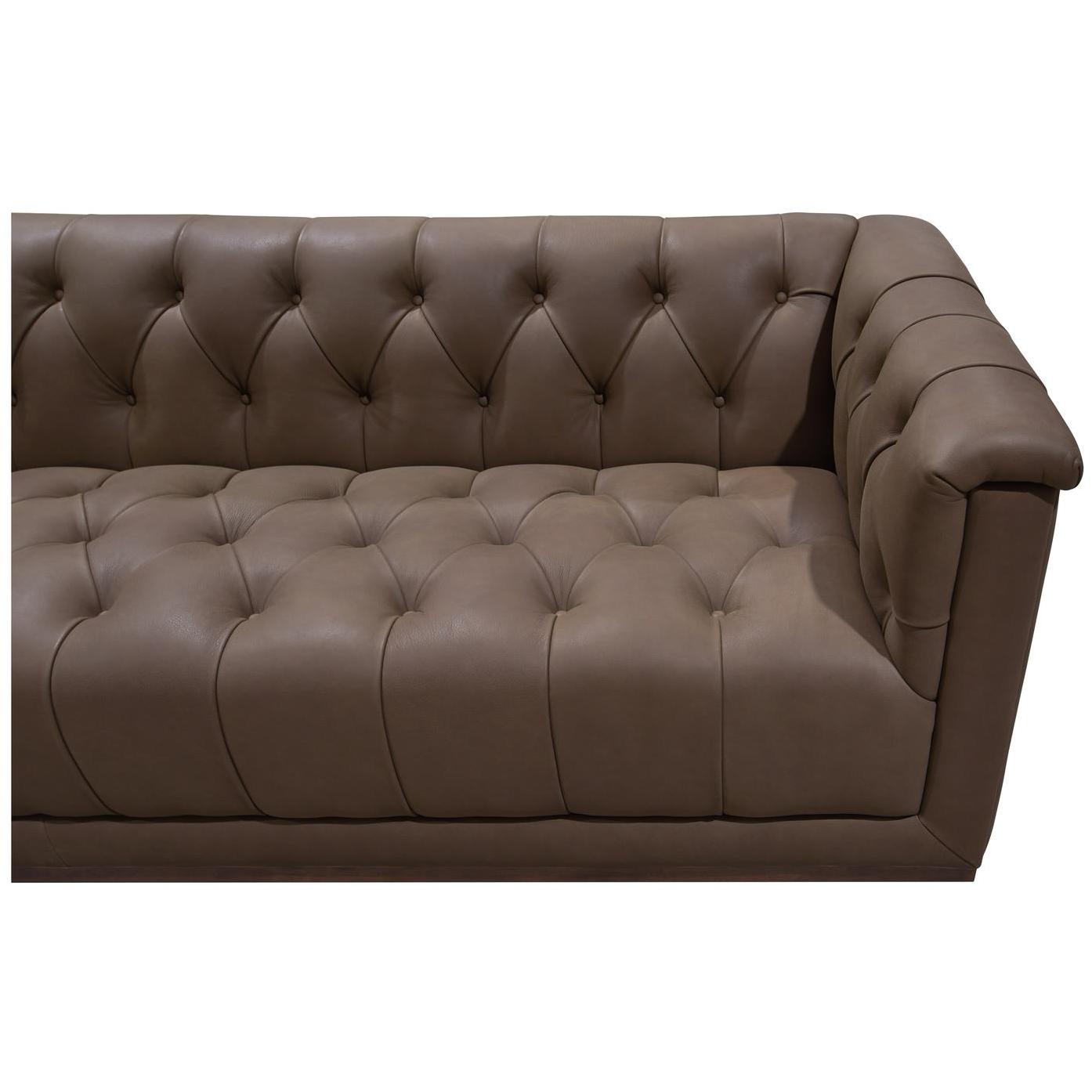 - Tufted Details: Tufted with a clean-lined, rectilinear frame with wood base detial.