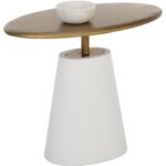 This unique side table will bring a bold yet warm look to living, lounge, and bedroom spaces. Features a dramatic grey concrete base with a brushed brass metal oval top.