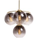 Boasting a beautiful cluster design, this modern chandelier is a fabulous addition to any space. Features four clear and grey glass shades with a black powder coated metal frame.