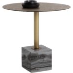 Add a touch of opulence to any space with this spectacular bistro table. Features a brushed antique brass frame with mesh patterning on the tabletop. Completed with a white marble block base. Also available in grey marble. Made in India. With refined craftsmanship, this design was brought to life by skilled local artisans. By nature, these materials develop unique imperfections such as fissures, markings and colour variations for a truly one-of-a-kind piece.