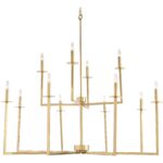 A modern and revitalized take on the traditional candelabra design, this impessive chandelier can light up any room. Crafted from a stunning metal frame with a brass finish.