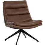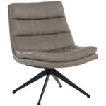 Lounge in comfort with this stylish, mid-century modern swivel lounge chair. Features horizontal tufting with a generously-cushioned seatback for superior comfort. Upholstered in missouri stone and mahogany Italian bovine leathers, and completed with a black powder coated steel base. Handle with Care: This design has been crafted with 100% genuine leather. Leather is a natural material; as such, colour variations, markings, wrinkles, grooves and light scratches are acceptable and appreciated characteristics. No two pieces are alike. Visit our Product Care page for more information on how to ensure the lasting beauty of this piece.
