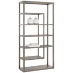 Modern style and functionality intersect in this beautiful bookcase. Features a frame crafted from solid grey mango wood with five shelves. Anti-tipping kit included. As wood is an organic, porous material, these pieces will contain natural variation of texture and may also exhibit fine indentations and cracks. Wood pieces will also display a disparity of colour and grain, and visible knots and burls that add to the character of each piece. Made in India. With refined craftsmanship, this design was brought to life by skilled local artisans. Due to the nature of handcraftsmanship, unique imperfections such as fissures, markings and variations in colour and shape are welcomed and appreciated characteristics for a truly one-of-a-kind piece.