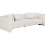 Artfully designed with soft geometric lines, the Kira Sofa evokes a distinctly modern style. Fully upholstered in our meg gold fabric, this sofa is velvety soft.