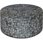 The Kiri outdoor coffee table features individual pieces of marble meticulously placed by hand in a concrete mold. After setting, the surface is polished to enhance the inherent luster of the marble amidst the sturdy concrete matrix. The deliberate arrangement allows the character of the natural stone and concrete blend to define its minimalistic design.