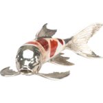 Made with brilliant colors form orange tiger penshell and cracked kabibi and finished with silver plate, the Koi Fish Figurine is a piece that people will not be able to take their eyes off of.