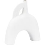 Reminiscent of the white sandy beaches in Kona, HI, this vase is ideal for tabletops in any modern home or office. The white glazed ceramic has a whimsical silhouette. May be grouped with other Kona styles to create a fun yet cohesive look on bookshelves and other flat surfaces.