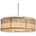 Dazzling and eye-catching, this large, modern chandelier will add a stunning display of radiance to any space. Features a smoke grey fluted glass design with a complementing metal frame in a nickel finish. Small version also available.