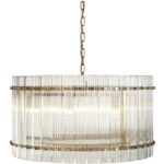 Dazzling and eye-catching, this small, modern chandelier will add a stunning display of radiance to any space. Features a smoke grey fluted glass design with a complementing metal frame in a nickel finish. Large version also available.