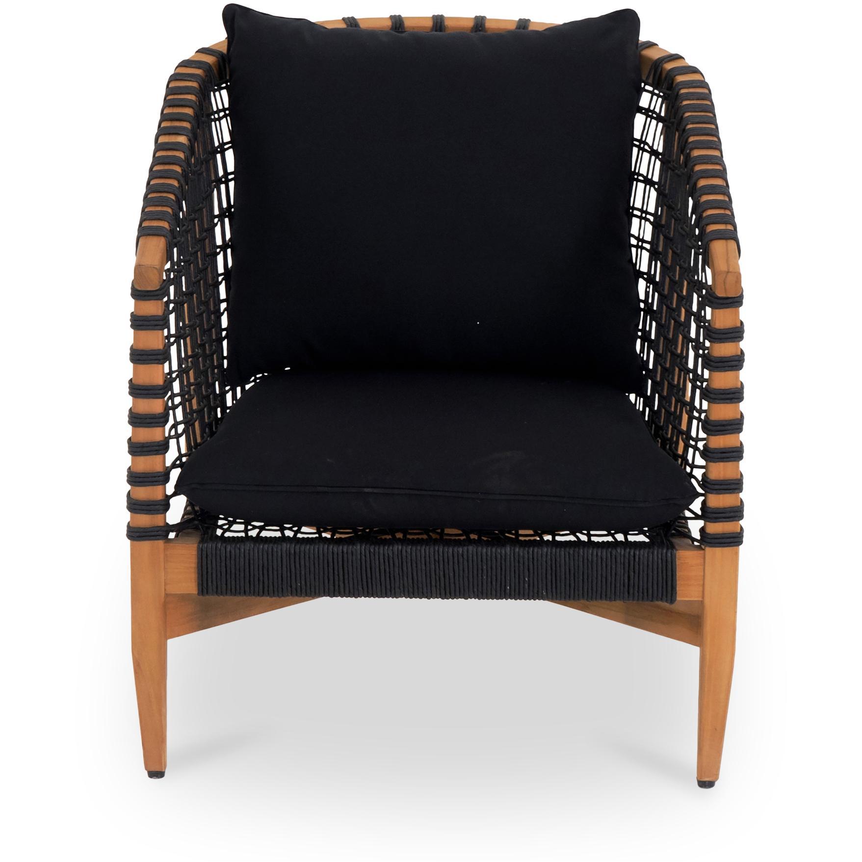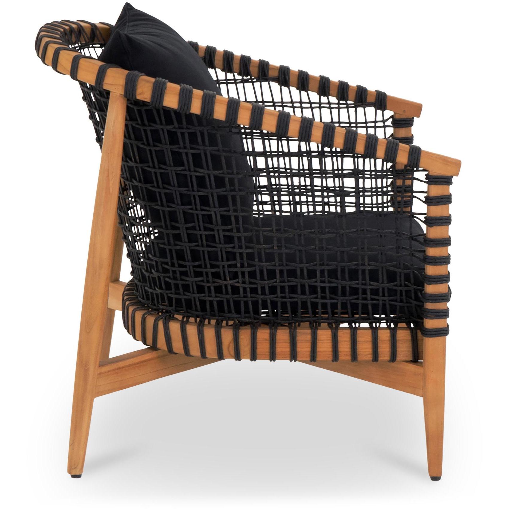 Named in tribute to the skilled weavers of Panama, Kuna showcases the traditional Lloyd Loom technique set against a contemporary teak wood frame. Over time, this gorgeous wood turns into a darker patina which looks all the more stunning contrasted against the black fabric upholstery of this versatile design. Easy-to-wash removable cushions keep this outdoor lounge chair bright, beautiful and ready for the sun.