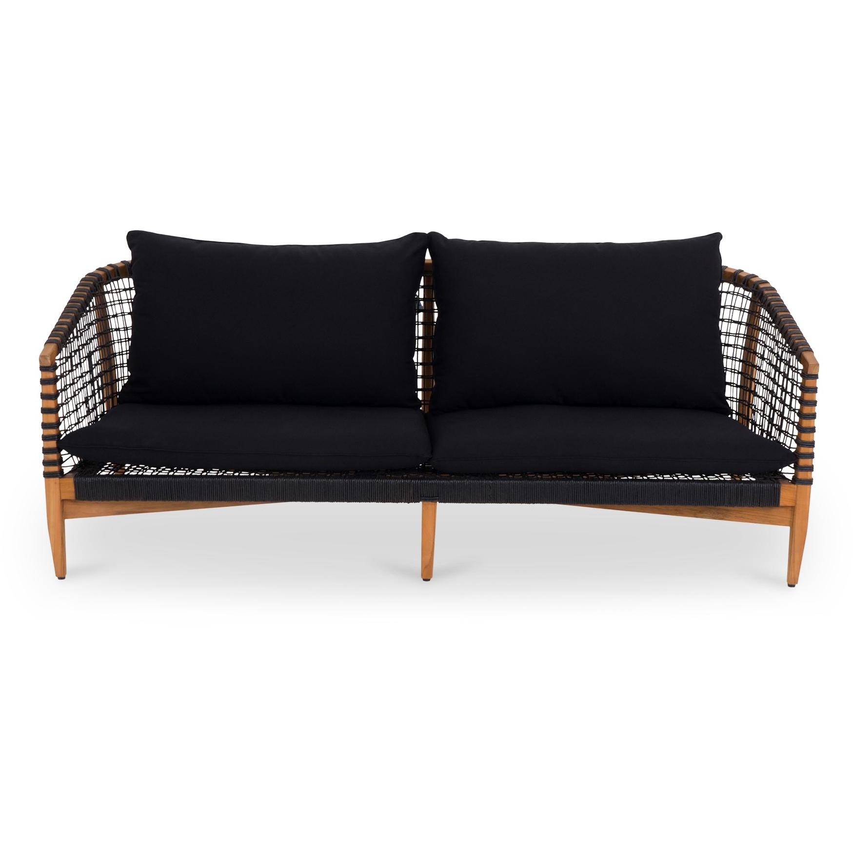 Named in tribute to the skilled weavers of Panama, Kuna showcases the traditional Lloyd Loom technique set against a contemporary teak wood frame. Over time, this gorgeous wood turns into a darker patina which looks all the more stunning contrasted against the black fabric upholstery of this versatile design. Easy-to-wash removable cushions keep this outdoor sofa bright, beautiful and ready for the sun.