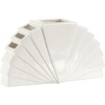 The La Feria Vase, crafted from glossy white ceramic, showcases a striking fan silhouette that brings elegance and vintage charm to any decor. Available in two sizes. Designed by Elizabeth Wicker.