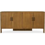 The Lachlan sideboard adds a fresh twist to mid-century and Scandinavian aesthetics with its unique three-legged design and gently curved back. Crafted from pine, it features visible joinery for a touch of artisanal charm, punctuating its floating silhouette. The sideboard has 4 interior shelves, soft-close drawers and is finished on all sides, ensuring both function and versatility go along with its sleek, modern lines.