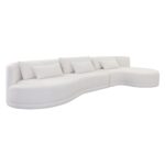 Indulge in the soft curves of the Laken Sofa Chaise. Upholstered in our stylish boucle copenhagen white fabric with a refined silhouette, this sofa chaise provides maximum comfort for entertaining in open spaces.