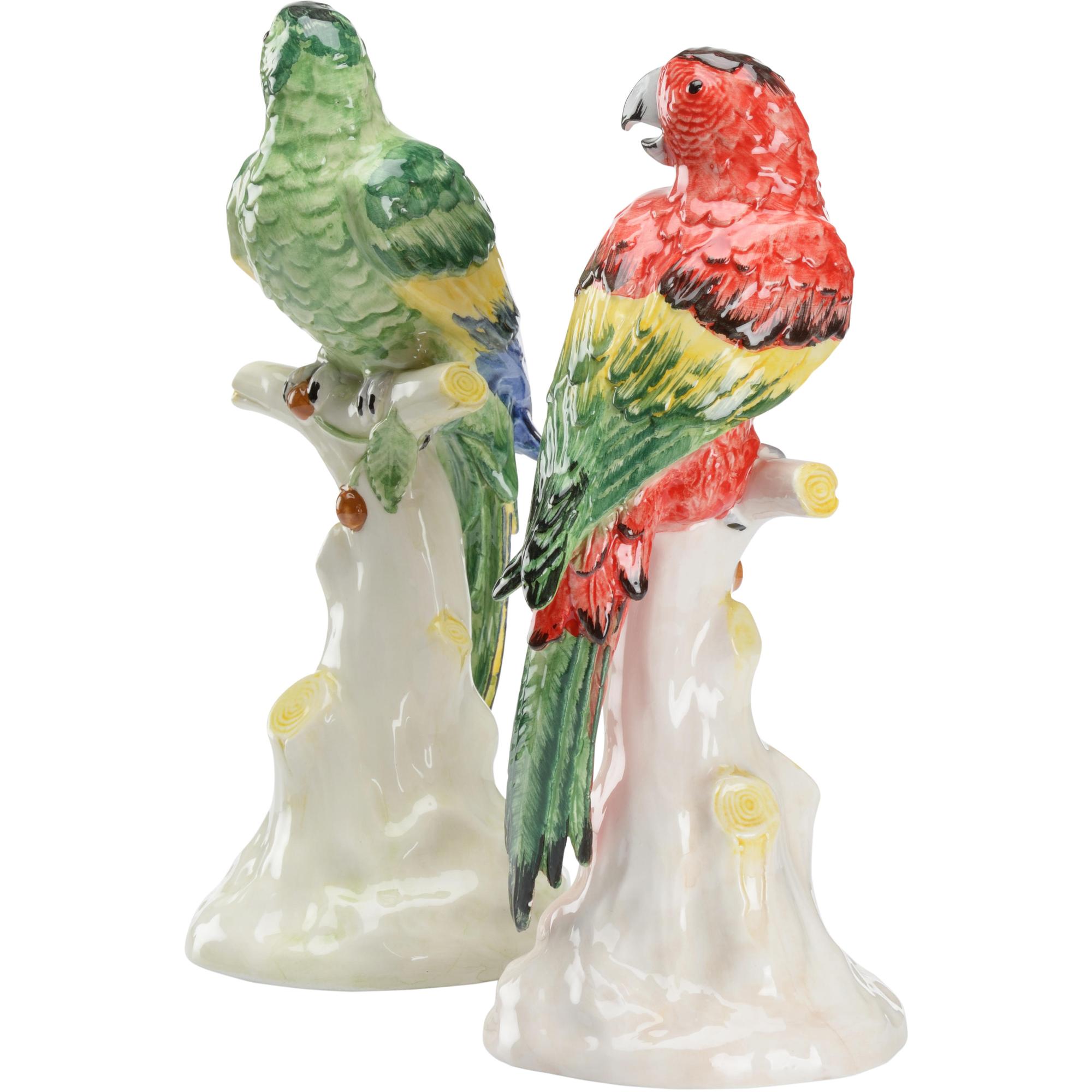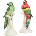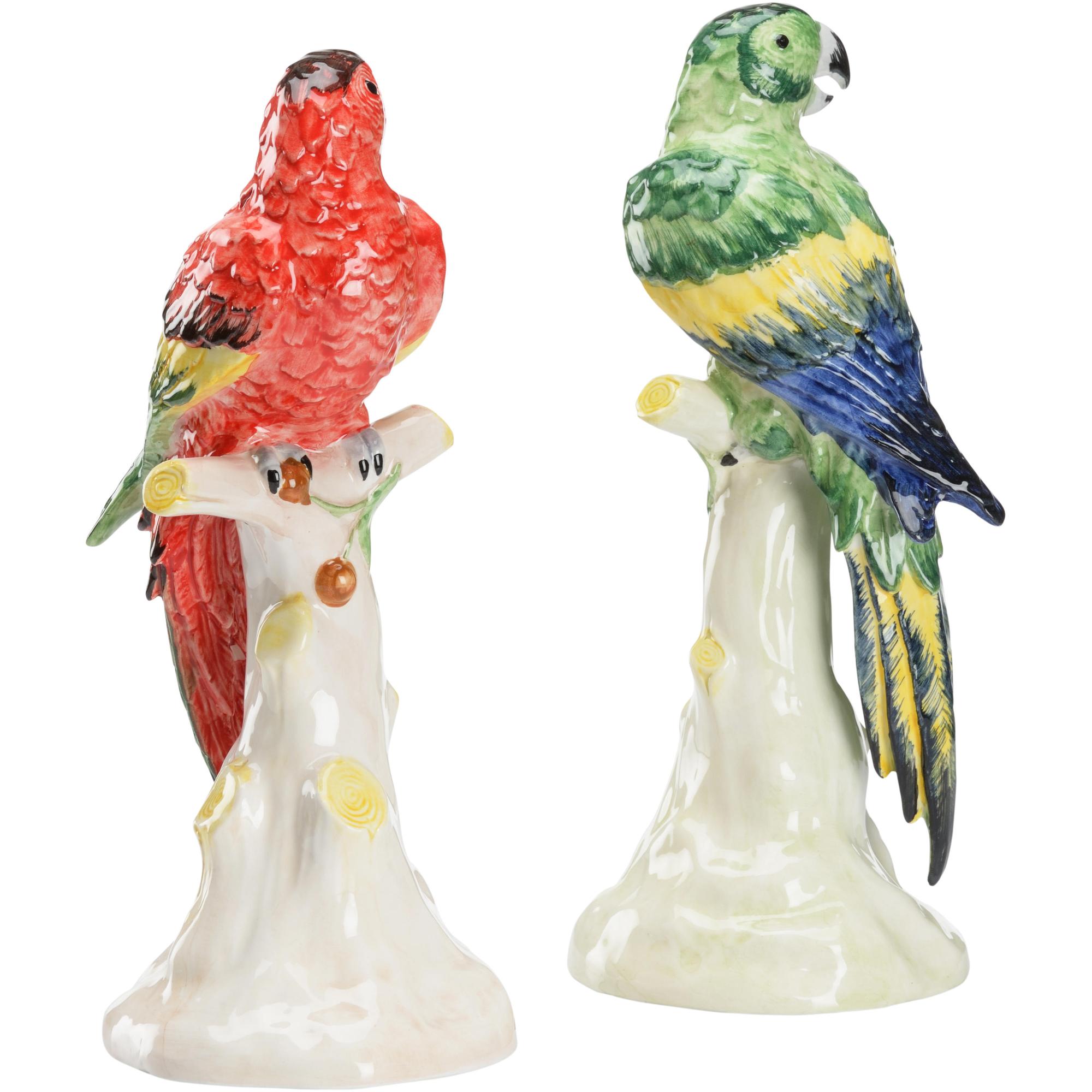 Inspired by nature, this pair of parrots bring a whimsical touch with vibrant colors made of handmade Italian ceramic. Perfect to display on bookcases or a mantle.