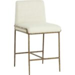 The Lathan Counter Stool is a celebration of minimalist design. Boasting a hand hammered antique brass iron frame and a comfortable seat upholstered in geralt linen. A luxurious addition to any space.
