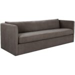 This luxurious sofa puts comfort at the forefront with its clean-cut modern design. Upholstered in danny dusty brown and cream fabrics. Completed with subtle curves and ample padding. As this piece features cushions filled with a mix of feathers and foam, occasional fluffing is required to maintain its lasting comfort and beauty.