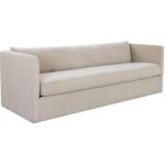 This luxurious sofa puts comfort at the forefront with its clean-cut modern design. Upholstered in danny dusty brown and cream fabrics. Completed with subtle curves and ample padding. As this piece features cushions filled with a mix of feathers and foam, occasional fluffing is required to maintain its lasting comfort and beauty.