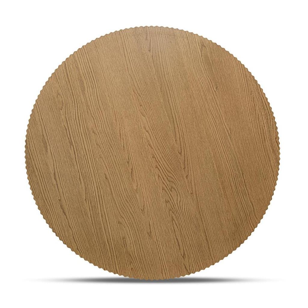 - Bold silhouette: Round tabletop with substantial thickness and scalloped edge creates strong visual presence, making it a focal point in any dining space.