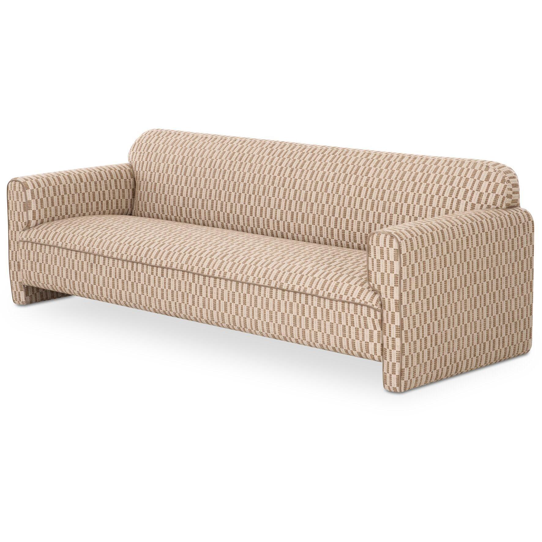- Curved Contours: Its squared side profile juxtaposes with inward-rolled arms and a gently curved back for an inviting silhouette.