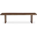 The Lila dining bench reimagines its live edge. It introduces a softer appeal with bullnose edging on the shorter ends and base, offering a delicate sophistication. This piece is an invitation to the beauty of live edge with an elegant, feminine touch.