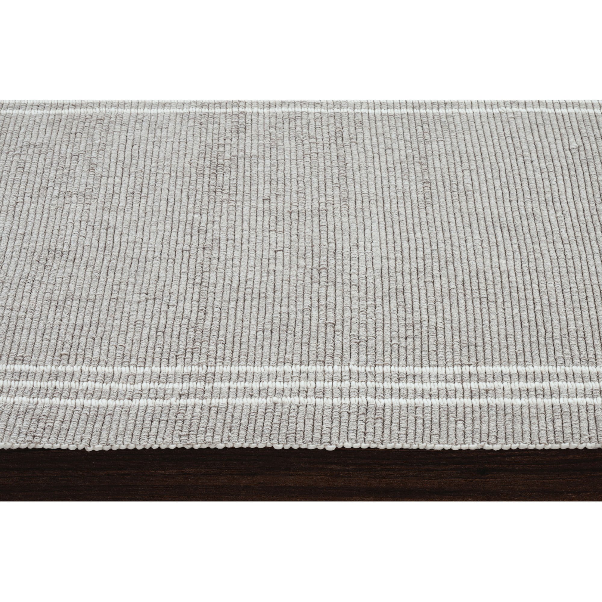 Neutral oatmeal hues and classic details intertwine within this rug design. Available in five different sizes, this piece adds a welcoming touch to the living room, hallway, office space and beyond. With a polyester and wool blend, it is set to withstand everyday activity while retaining its polished aesthetic.