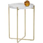 The Liv side table is beautifully crafted with a marble tray top and elegant gold steel base. Can be used as an end table or a small nightstand. Stocked in black and white marble. As marble is a natural material, unique veining, pitting, fissures, micro-cracks and colour variations are all characteristics that add to the uniqueness and beauty of each piece.