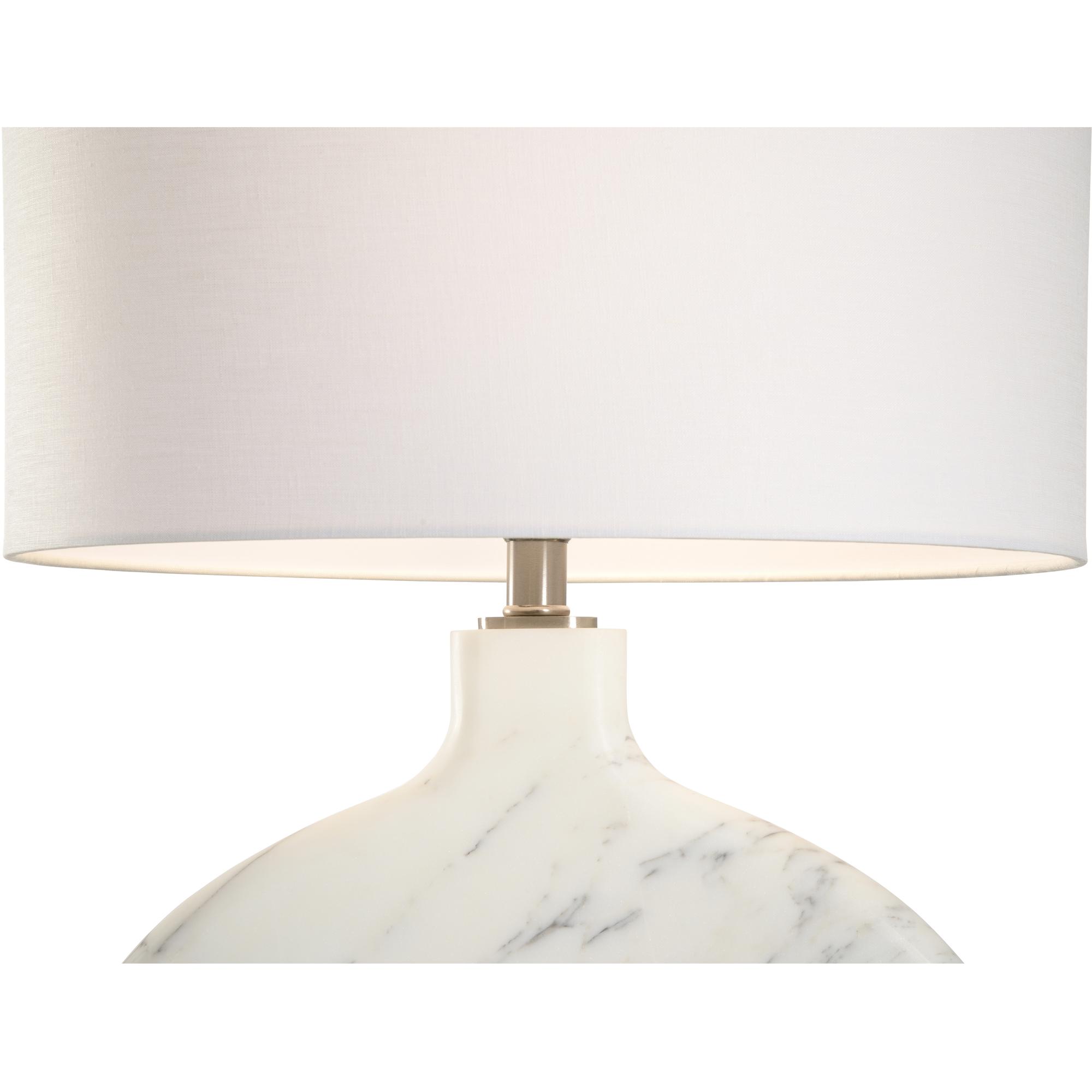 The Lizzie Lamp showcases a mesmerizing marble pattern, meticulously crafted to mimic the natural beauty and texture of marble stone. Each swirl and vein is intricately detailed, creating a stunning visual effect that adds sophistication and charm to any room. The lamp features a ceramic body adorned with a captivating black and white marble pattern, resting atop a sleek acrylic base and finished with a coordinating finial. Designed by Shayla Copas.
