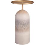 The Lorna Martini Table captivates with its compact round top and distinctive rounded base, adorned with a striking Ombre finish. The intriguing mix of rough cast aluminum and solid concrete showcases a captivating contrast of textures and tones, making this piece a unique and engaging addition to any space.