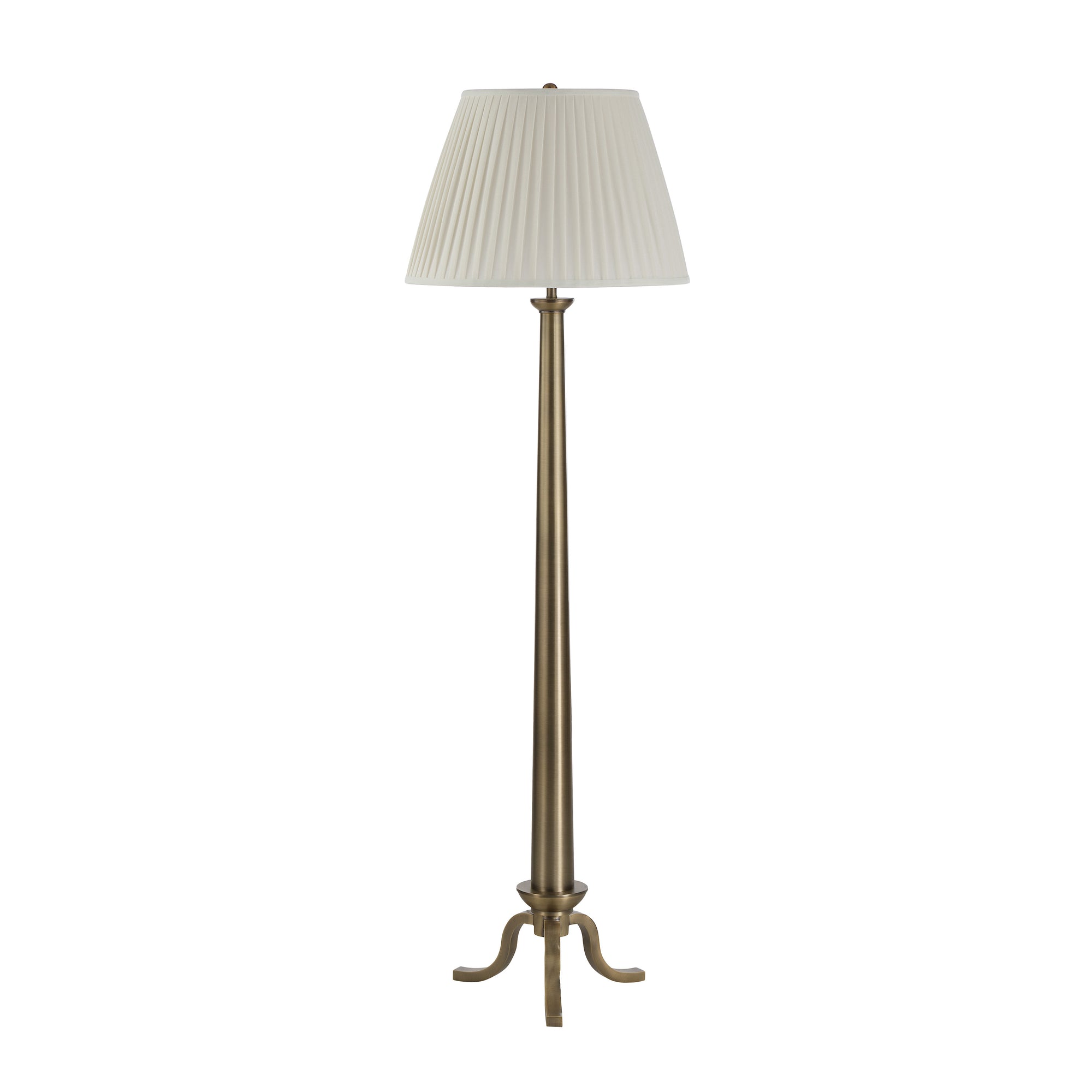 Brighten any space with the Lucerna floor lamp, crafted with a rich antique brushed brass base and paired with a soft off-white linen shade. Its classic silhouette adds a touch of refined warmth to any room, while the convenient 3-way switch lets you set the perfect mood. Ideal for living rooms, bedrooms, or workspaces, the Lucille delivers a graceful blend of traditional style and modern ease, bringing a welcoming, elegant glow to any room.