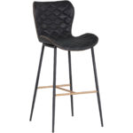 A stylish barstool featuring a sculpted diamond-stitched seat and exposed zig-zag stitching along the seat frame. Stocked in antique brown faux leather with black steel legs. Stretchers in a champagne gold painted finish complete the look. Suitable for various dining, kitchen and bar spaces of all sizes. Handle With Care: This design has been crafted with faux leather. Faux leather is manufactured to reflect the natural characteristics of leather; as such, colour variations, markings, wrinkles, grooves, and light scratches are appreciated characteristics. No two pieces will be alike.
