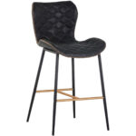 A stylish counter stool featuring a sculpted diamond-stitched seat and exposed zig-zag stitching along the seat frame. Stocked in antique black and brown faux leather with black steel legs. Stretchers in a champagne gold painted finish complete the look. Suitable for various dining, kitchen and bar spaces of all sizes. Handle With Care: This design has been crafted with faux leather. Faux leather is manufactured to reflect the natural characteristics of leather; as such, colour variations, markings, wrinkles, grooves, and light scratches are appreciated characteristics. No two pieces will be alike.