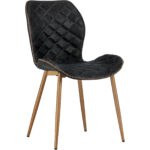 A chic and comfortable dining chair. Features beautiful diamond tufting and stylish zig-zag stitching on the seatback. Stocked in antique brown faux leather with brushed black steel legs.
