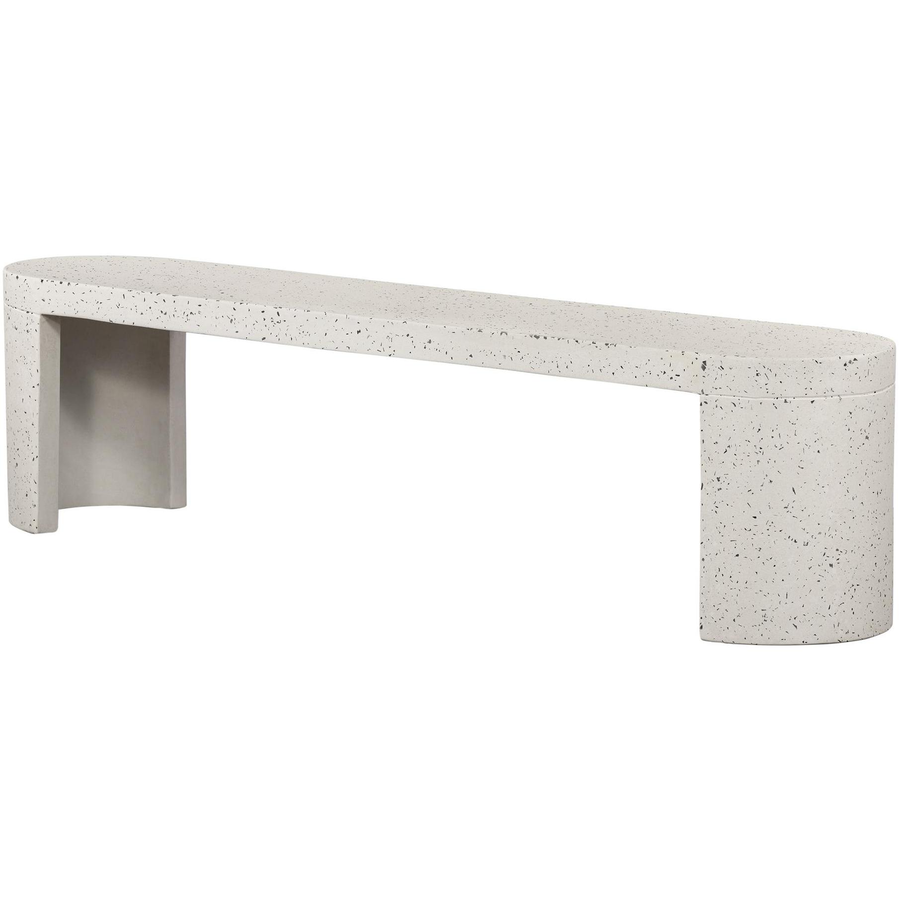 Perfect for an open-plan garden or patio setting, this spacious bench’s rounded geometric shape contrasts so well within an organic environment. Smooth and minimal, it is constructed in a unique concrete terrazzo composite that focuses on the natural beauty of minerals with its speckled, contemporary aesthetic.