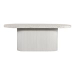 The foundation of beautiful happenings in your backyard, whether you’re casually enjoying the late afternoon sun, or dining late into the evenings. Perfect for an open-plan garden or patio setting, with spacious seating for 6, this outdoor dining table’s rounded geometric shape contrasts so well within an organic arrangement. Constructed in a unique concrete terrazzo composite, its foam core tabletop focuses on the natural beauty of minerals and adds visual texture with its ribbed, hollow base. A contemporary, ergonomic shape that will fit invitingly into any outdoor scene.